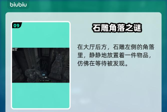 9、仍旧是这个地方,找到大厅后面,在一个石雕左边的角落里放了一个。
