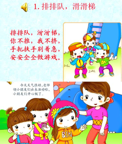 玩滑梯前,先检查一下,看看滑梯是否稳固,表面是否干净,有没有尖锐的东西,然后,要穿合适的衣服,避免有绳子或带子,这些容易挂住,很危险,要记住,一定要排队,不能推挤。
