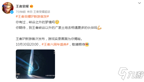 10月30日20:00,#王者六周年盛典#,敬请期待