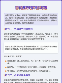 你是不是也卡关了,面对复杂的谜题,感觉无从下手,别着急,很多玩家都遇到过,其实,解谜游戏有规律可循,掌握一些方法,就能事半功倍,今天,我们就来聊聊,怎么顺利通关解谜游戏。