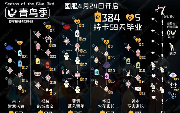 关于光遇青鸟季什么时候开始的介绍就到这里了,很快这次青鸟季就要开启了,就在4月24日,新的先祖将指引玩家去寻找青鸟,完成季节蜡烛和爱心收集,可以兑换丰厚的外观奖励哦!