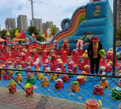 还有简单的套圈,摆几个小奖品,站在线外扔出去,套中了就是你的。