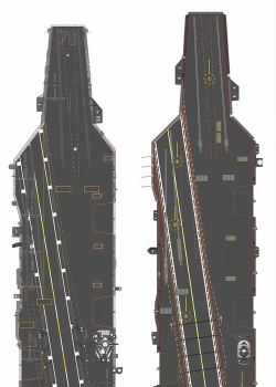 并且,当将004航母与企业航母进行对比时,可以清晰地观察到004航母在配置和属性方面展现出了更为卓越的性能。在各项技术属性上,004航母均表现出更为出色的特点。004航母在火力、防御和战术灵活性等多个方面都略胜一筹。