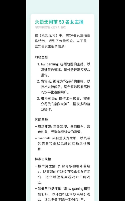最重要的是,要有个人特色,游戏名字是基础,但你怎么播才是关键,同样的游戏,不同主播播出来,效果完全不一样,你可以结合自己的兴趣,比如喜欢穿搭,就播换装游戏,喜欢音乐,就播音游,这样直播起来更自然,也更容易吸引同好。