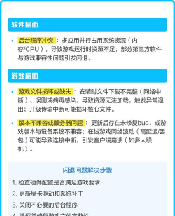 游戏闪退很常见,但原因多种多样,你需要从游戏、硬件、软件、系统这几个方面,逐一排查,找到问题根源,才能有效解决,下次再遇到闪退,不妨按这个思路试试看。