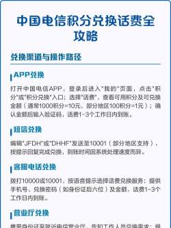 兑换前,要看清规则,比如,积分有效期是多久,有些积分会过期作废,还有,兑换的话费面额是固定的,比如10元或30元,另外,注意是否限地区,有些只支持特定运营商,仔细阅读说明,避免白忙一场。
