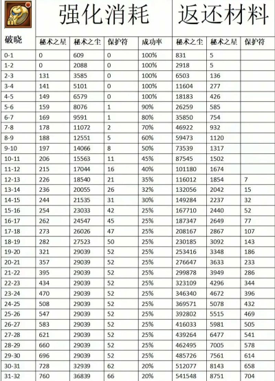 最后保护符使用要聪明强化到+9以后,失败会有降级风险,这时候保护符就派上用场了,但保护符也很珍贵,建议+12以上再用,或者你特别心仪的极品饰品,也可以提前用,平常+9到+12之间,多攒点材料,硬扛过去也行。