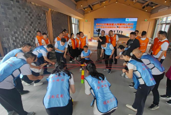 完成之后,团队的感觉会不一样,大家会意识到,彼此是可靠的,这种体验,比说一百句话都有用,类似的还有“两人三足”,步伐必须一致,否则就会摔倒,它让队员学会协调和妥协。