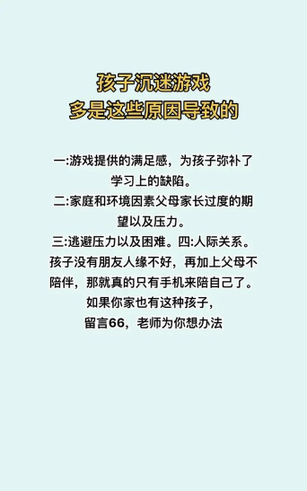 有时候,孩子玩游戏,也跟家长有关,比如,家长自己就爱玩手机,孩子自然有样学样,或者,家长工作太忙,没时间陪孩子,孩子没事做,就只能找游戏玩了,还有,家长管得太严,孩子反而更想反抗,偷偷玩得更凶,所以,我们得先看看自己,是不是哪里没做好。