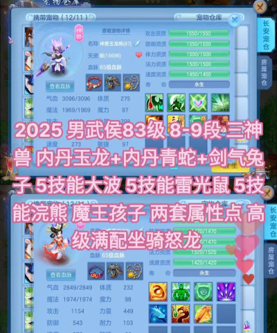 珍兽属性不错,技能也实用,适合中期过渡,神兽则更强,成长上限更高,自带特殊技能,比如高连击,或者高法爆,但培养成本也高,需要更多资源,比如高级兽决,或者元宵道具,所以要根据实力,合理选择培养。