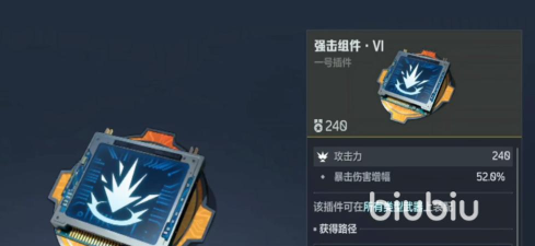 当然大家之所以要获得该组件,肯定是因为强大的属性。所以有部分萌新还不知道这个组件有什么用,作为1号插件。有了它之后可以提升240点的攻击力,另外还能获得高达52%的暴击伤害增幅,这可以瞬间秒杀对手,更适合走爆发流的玩家装配。
