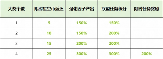 根据抽到当期大奖的个数,返还相应的【限时星空币】。返还【限时星空币】的时间为下个赛季的首日,通过邮件发放。