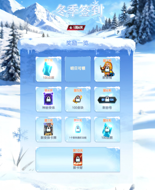 累计登录即可领取表情、全新元旦卡背、变体、神秘变体等丰富奖励。