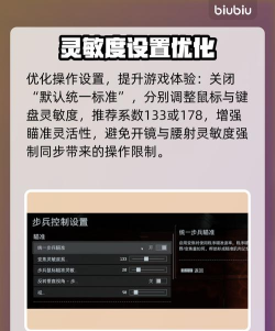 灵敏度同步:关闭“默认统一标准”,避免开镜与腰射灵敏度强制同步。根据习惯调整系数,推荐133或178,确保瞄准灵活性。