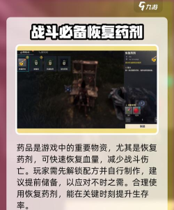 恢复药剂是前期药品类唯一的必备物资,能帮助快速的回复血量,在血量不佳的时候立刻回复状态,避免被敌人秒杀,尤其是喜欢近战打boss的玩家,前期一定必备恢复药剂。