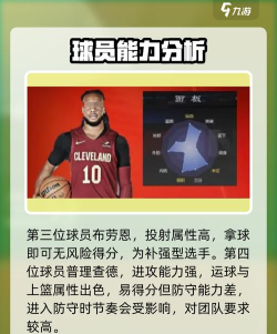 第七位球员米切尔,这是一位强三分属性、强控球属性、强中投能力、强灌篮属性和弹跳力的球员,该球员在3分线内强度可以说是直接拉满了,不管是打防守还是打进攻都是顶级水平,不过到了三位外就会有明显衰弱的趋势,因此需要为该球员安排战术。