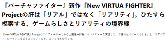 世嘉经典3D格斗游戏次名作的重启版,《新VR战士》正在积极制作中,日前如龙工作室的开发制作人总监山田理一郎表示,本作游戏追求的不是真实而是现实。