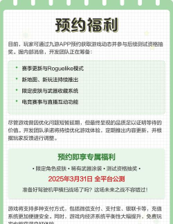根据小编目前所了解到的信息,该游戏的测试开启时间为2025年3月31日,不过正式上线还没有公布,其实它在原作的玩法上也是有做出许多革新的,比如保留经典射击的同时,也为玩家加入了很多的创新元素,像时空追猎、特色副本以及激战构筑等玩法都是其中之一。