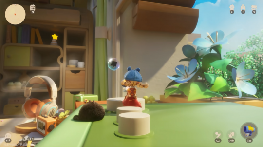 《粒粒的小人国》在视觉表现上也是下足了功夫,以明亮温暖的皮克斯绘本风奠定了游戏整体的美术基调,色彩饱满而不刺眼,线条柔和且充满手绘质感。从已公开的实机画面来看,场景中的草地纹理、家具细节、光影渲染都显得十分细腻。阳光穿过叶隙的斑驳光影、铃兰花蜜的甜美香气、清晨露水的清澈剔透——这些在日常生活中容易被忽视的细节,在游戏中都成了治愈的美景。