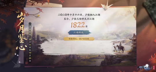五周年庆典系列活动【五载秋水记今朝】持续进行中,打开主界面【秋水记】入口即可进入!第一弹活动【七日秋礼】【今朝食肆】【中秋夜宴】还可以持续参与哦~