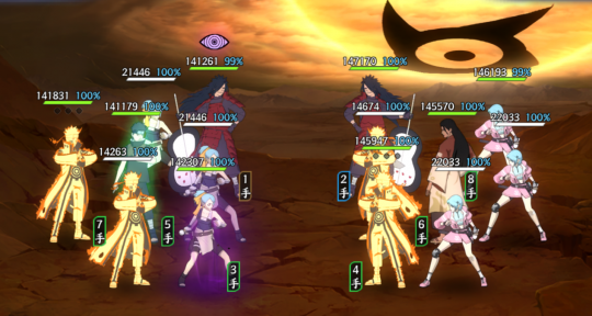 Tip:小队伤害,而且拥有查克拉转冷却释放的效果,所以相当于查克拉充足的情况下,每回合都能释放奥义,并且根据斑的威压的数量,还会提高伤害上限。