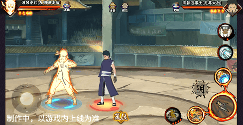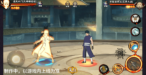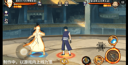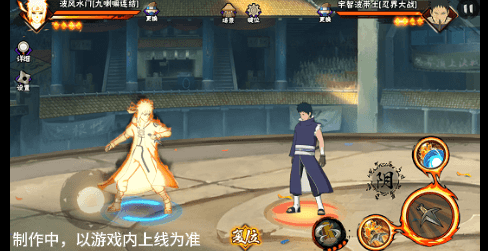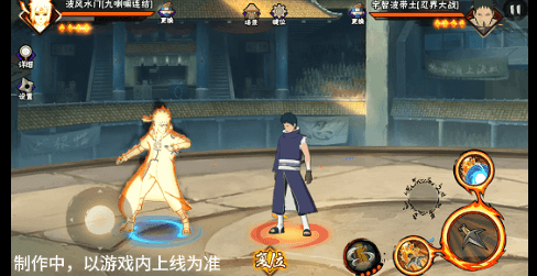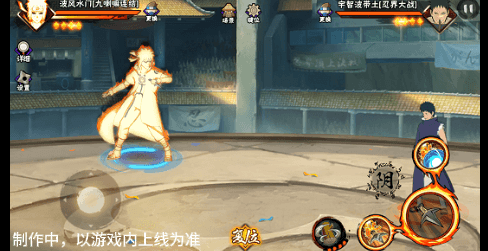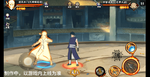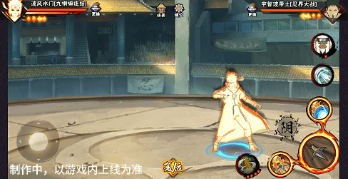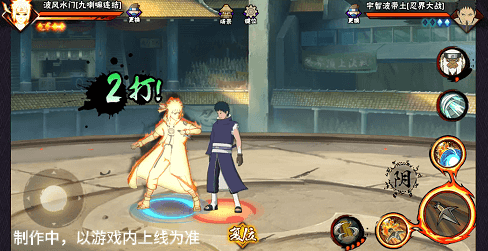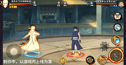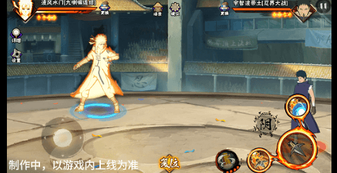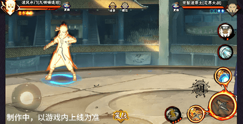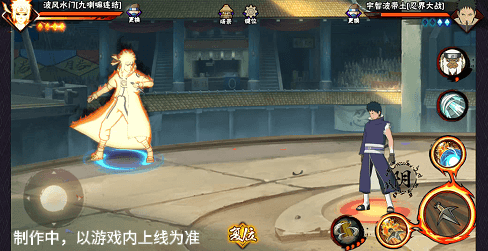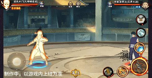 阴九尾查克拉(能量条)未蓄满一格,但满奥义点时点击二技能位置可清空奥义点释放小奥义,阴九尾可将凝聚中的查克拉立即激活,九喇嘛水门化身阴九尾用尾巴横扫敌人,随后持续咆哮攻击敌人。