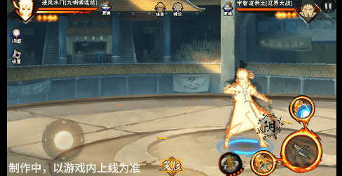 九喇嘛水门在使用阴九尾之力:普攻落地时,技能轮盘会解锁新的技能图标,点击将释放真奥义,九喇嘛水门分身通过丢出的飞雷神苦无连续攻击敌人,本体则凝聚尾兽螺旋丸,随后分身将敌人抓取至本体跟前,丢出螺旋丸将其终结。奥义结束可接技能一:螺旋丸。