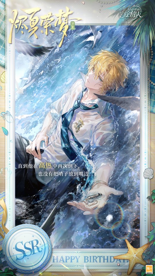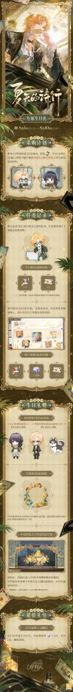 8月1日09:30 - 8月10日05:00,参与罗夏生日活动「夏天的诗行」,在生日当天与他共度,完成剧情即可免费获得1张生日纪念画灵[缀花成环]。
