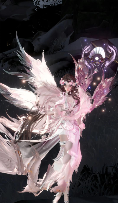 公主这款时装让羽毛化成了衣裙,珠宝点缀在腰间和手臂,花朵停留在发间,当她使用出治愈力量的时候,金线做出的玫瑰花瓣还会依次绽放在腰背和手臂之间,层层叠叠的玫瑰花瓣,就像是蝴蝶的翅膀一样美丽,她的“绯心”由项链与耳环搭配而成,耳环为宝石打造,珠链则是由玫瑰打造。
