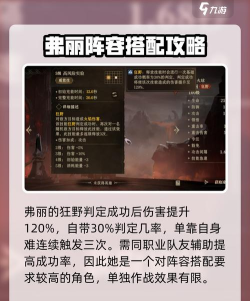 因为狂野判定成功之后提升伤害为120%,每一次都有基础30%判定几率,所以要想连续释放出三次,凭借自己是很难实现的。但是有了同职业队友的帮助,这样几率就会提高一些,所以弗丽是一个非常考验阵容搭配的角色。单单只有自己很难打出效果。