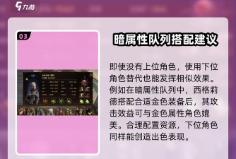 2、冰光队。阿西莉亚的定位会更加偏向功能性辅助,而非主坦角色。她可以搭配乌沙、拉瓦、冰女洛希妮雅和加里乌斯等英雄,通过强大的功能性辅助技能为团队提供更全面的支持。如果玩家有条件,可以加入冰骷髅瓦妮雅菈,这个角色在前中期对技能书需求较低,非常适合刷副本时使用。无论是控制型的冰光队还是输出为核心的雷光队,阿西莉亚都能凭借技能特性为团队提供不可或缺的帮助。