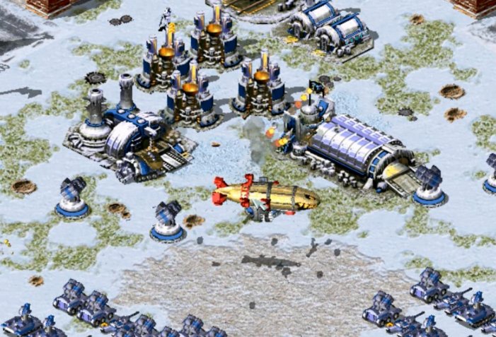 实际中并没有那么简单,敌人的进攻一定会让你抓狂。开始让多功能步兵车打四周的磁爆线圈升级,最好有3个三级的就不怎么惧基洛夫了。敌人一般是从下方两个口进攻,下面用大兵来守,传来的灰熊就用来守上面,灰熊一定要开出去防敌人V3。不停造美国大兵驻扎下边的两栋房子,房子快坏就派工程师去修,只要撑到你造出幻影你就不用担心防守了。