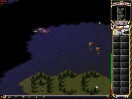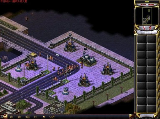 然后全军前进,工程师在后面,注意动员兵进入那个加油站可以减少伤亡。一路直推杀到盟军基地,一定要把爱国者打掉,然后工程师修好桥,如下图