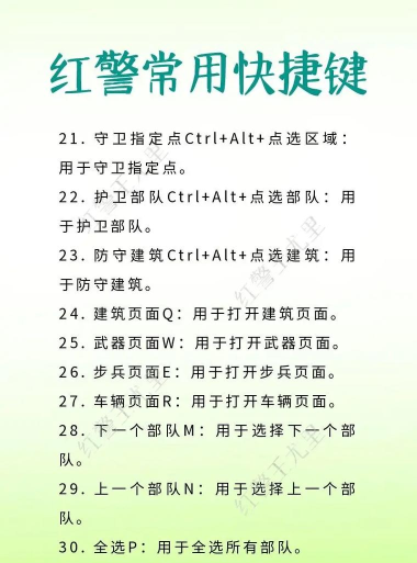 碾压,也可以叫强制移动”。很多人对付伞兵偏爱使用警犬,不过这个碾压可以说是比警犬更可靠的应对方法。看准伞兵落点所构成的线段,让坦克停在线段的一端,看到伞兵几近落地的时候就按住alt点线段末端的那个兵,这样很快伞兵差不多就被碾死一大半了,再用几次这样的操作,解决8个美国大兵组成的美国空降部队顶多也就用两三秒时间。由于步兵容易被碾压而速死,高手对决中生产步兵是很有节制的的,少有能看到兵海”的出现。不是每一种车辆都具有碾人的能力,也有一些步兵是不可碾压的,至于哪些不行,你自己试试就知道了。若是把这个操作用于战机,则几乎可以让战机停驻于任意的建筑,而且是不可见的。这样一来,让多个战机置于一个单元格,再配以铁幕装置、超时空传送,效果惊人。不过此操作并不总是灵验,有很多时候都是在目标建筑上绕圈之后自动开始执行返回机场的命令,你得多试几次才行。若是用这个方法把战机停驻在维修类建筑(维修厂、船厂、前哨站),你会发现,你的战机居然被那些工厂维修了,很神奇吧!10shift+鼠标左键在当前的选中状态下增选或减选物件。这是属于一种精细化的操作。这个操作,本人最常用于战机。比如,你的空指部停放了4架黑鹰战机,你