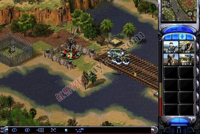 间谍偷点钱,进电站,我方磁暴步兵消灭敌人磁暴步兵和磁暴线圈,消灭战车工厂附近敌人,间谍进入,工程师占领,我方基地车到来(5-7)