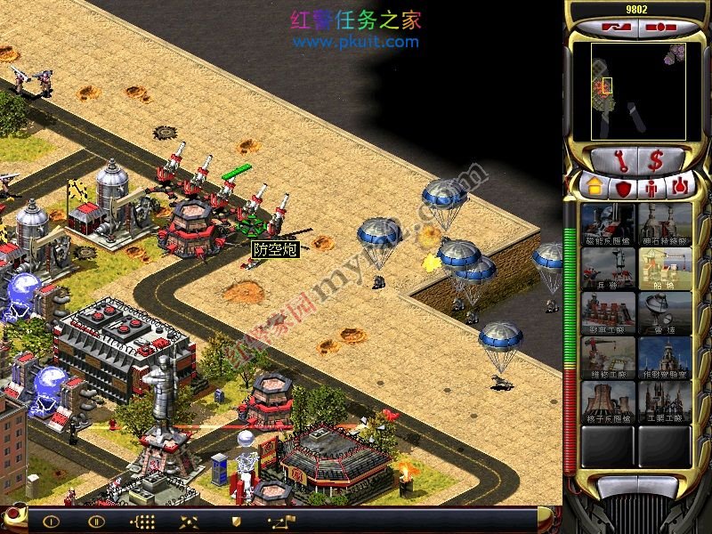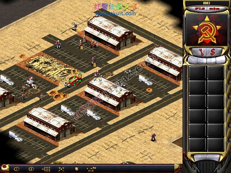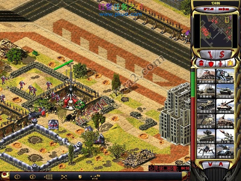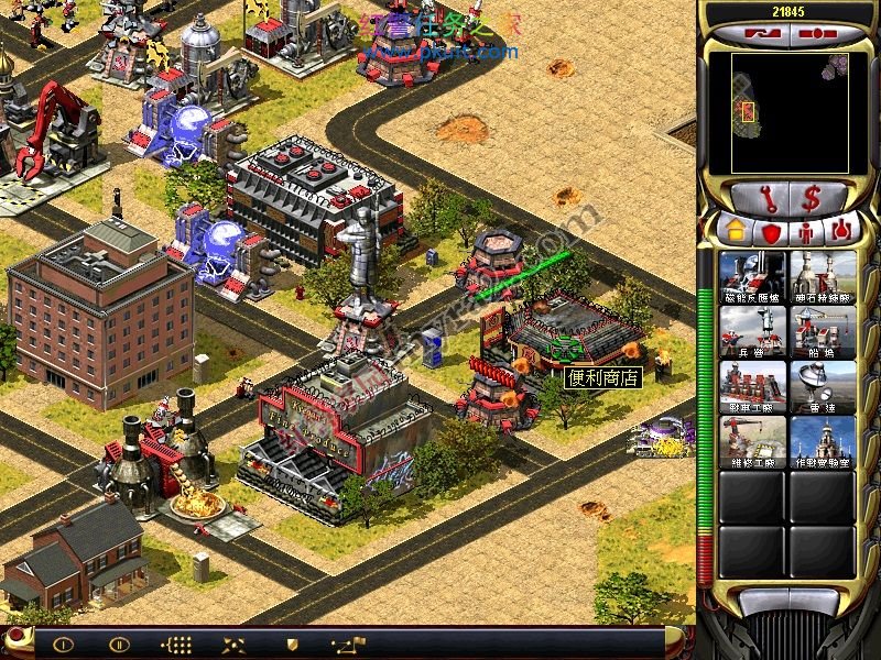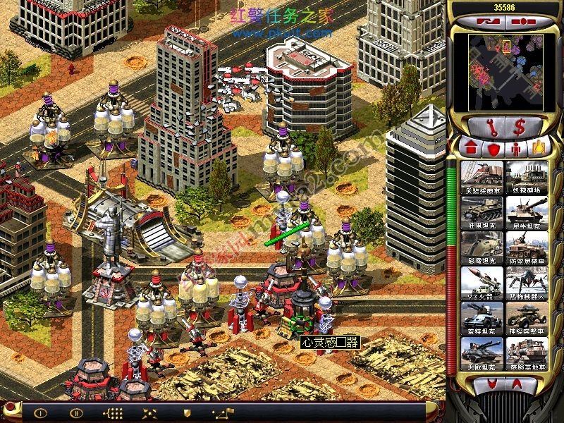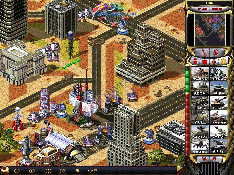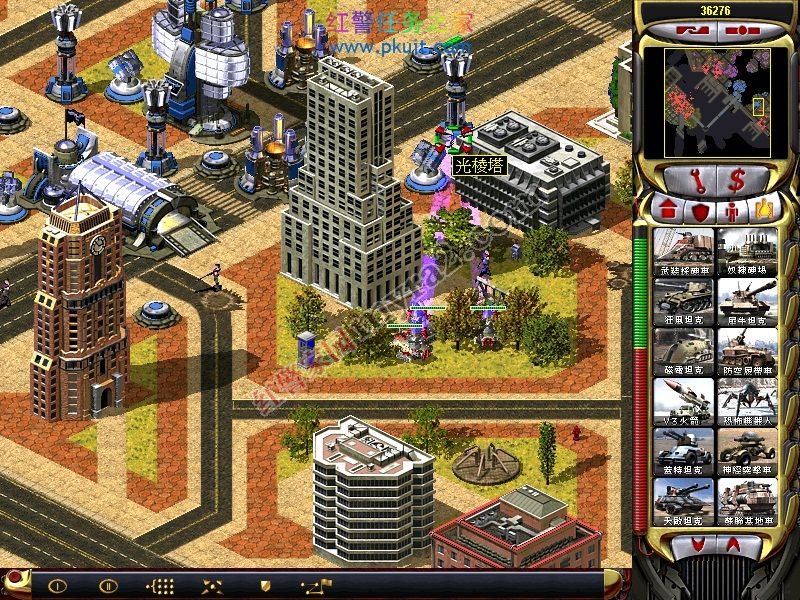 有了这个战车工厂和维修厂。你可以出盟军基地车了。哈哈。接下来,基本简单了。用光棱坦克拆建筑。。。幻影掩护。