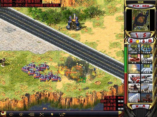 电脑还有一个建造厂在地图右上角,还是用黄瓜爆掉,在摧毁所有战车工厂和兵营后电脑会卖掉所有建筑总攻,你是挡不住的,不过还是能过关