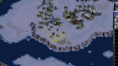 后期盟军有飞行兵群、海豹谭雅间谍等;苏联有多个boris守基地;尤里X不多。
