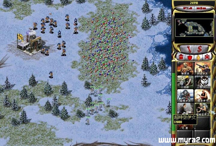 首先,出几个超时空伊文和一个疯狂伊文(只要是可以安炸弹的就行,貌似伊文比较便宜,但超时空伊文是必备的。)让伊文给超时空伊文安上炸弹,之后选中超时空伊文,让他们攻击一下敌人的重要建筑,他们就会传送到那个建筑旁边,如果失败被杀的话就会自爆(超时空军团可能会防住,没试过),那样也能给敌人造成损失,如果成功的话则更好,安在敌人建筑上的炸弹加伊文身上的炸弹,一起爆炸,敌人就等着作恶梦吧!用这个方法炸敌人的战车工厂和兵营只需要一两个就够了,至于总部和核电厂可能会多几个,但没关系。另外,问一个问题,假如在一个小兵身上安炸弹,然后再把这个小兵压死,这个炸弹会不会爆炸,会的话可能会有点困难。