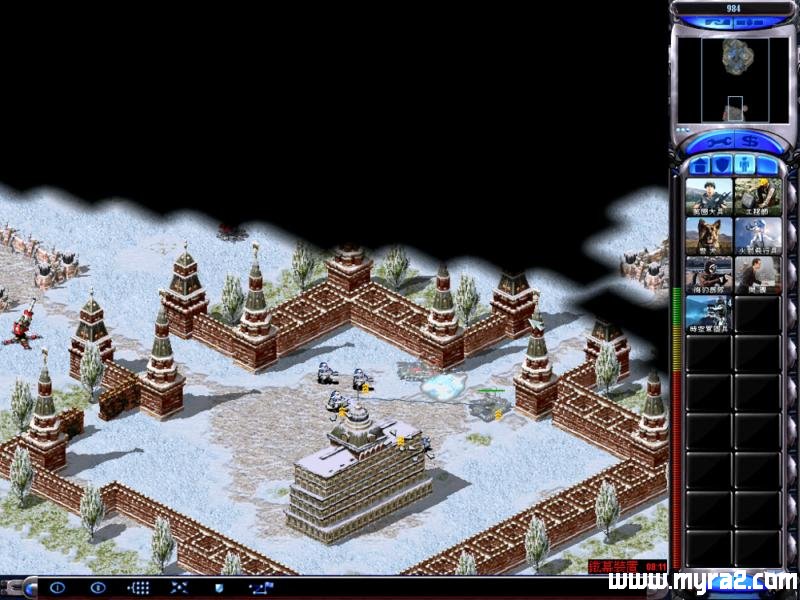 攻略详情:开局坦克堵口然后速高科 双矿场 不建车厂 然后三兵营憋超时空军团兵 因为能看到克里姆林宫 用视野跳到克里姆林宫墙外