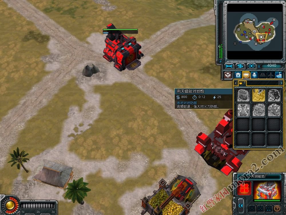 2.兵营开局,起重机,双小电,双矿。期间兵营出工程师占油井,侦察单位去对方探查对方开局方式。在路口可以考虑放一个机枪塔。