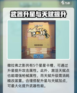 撒拉弗之影一共有5个星星卡槽,也就是通过升星可以让武器的攻击属性提高到最高。同时通过天赋点的激活也能增加枪械的属性,天赋的升级需要消耗精改装置。
