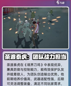 茶渡泰虎在《境界刀鸣》中的强度表现十分出色。他不仅能够通过自身的防御技能保护队友免受伤害,还能通过眩晕技能控制敌人,为团队争取更多的输出机会。在前期资源有限的情况下,优先培养茶渡泰虎能够显著提升队伍的战斗力。此外,他的武器泛用性极强,几乎可以适配任何装备,使得玩家在后期培养阶段可以根据自己的使用习惯进行灵活调整。