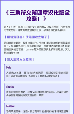 总之,收集全部“神秘蛋”并在最终战选择“反抗预言”,或许会触发后续隐藏剧情,而Kris的灵魂异变可能要等到完成“光与暗的抉择”剧情,解锁“灵魂共鸣”技来解决。三角符文全流程怎么通关已经解答完了,接下来期待您深度体验《三角符文》的完整剧情,解锁所有隐藏要素与多结局分支,成为真正的“光之民英雄”!