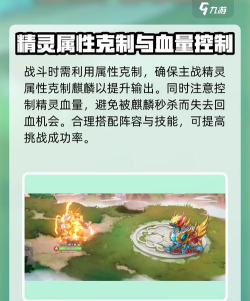 记得去利用属性克制,玩家需要去确保主战精灵的属性克制麒麟,这样是能变相增加输出的,同时在战斗中也要注意控制精灵的血量,避免被麒麟直接给击杀导致回血。
