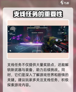 首先在进行支线任务之前,游戏的一些基础操作一定要了解,比如移动,射击等等,同时武器装备的特性也要了解清楚,这样才能更好的去做任务。支线任务里面一般经常会使用到一些特定的武器,或者是使用特殊的技能去完成特定挑战,所以提前将这些都熟悉对于任务是有很大帮助的。