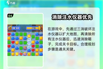 之后玩家们先不用管箱子,我们首先需要做的便是利用三消将注水仪器给破坏掉,之后我们的游戏地图便会越来越大。在处理完所有的注水仪器后,我们抓紧将箱子给消除掉,这样便能通过关卡了。