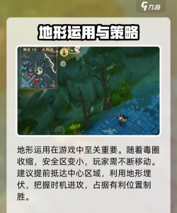 最后地形的运用也非常重要,随着游戏的进行,地图上的毒圈会慢慢收缩,这也意味着安全区域将越来越小,玩家们都需要不断移动,大家可以提前到中心区域,根据地形的地点进行埋伏后,选择合适的时机进行进攻。