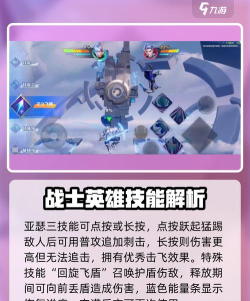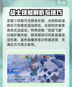 三技能点按,他会高高跃起,并向上发动猛踢,在技能命中敌人之后,在空中点按普攻,他会追加一次巨剑刺击,通过摇杆可以改变刺击的方向;长按三技能则会造成更高的伤害,但是不能进行追击,这也是亚瑟比较核心的技能,拥有出色的击飞效果,可以当做终结敌人的招式来使用。