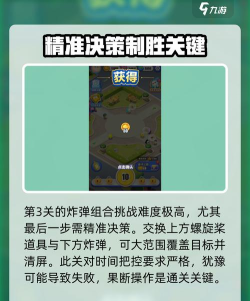 第3关的炸弹组合挑战将难度推向顶点,尤其是在最后一步的决策上。要想顺利通关,必须精准选择上方的螺旋桨道具和下方的炸弹进行交换。这样不仅能覆盖大范围的目标,还能直接清屏,给你一个完美的结局。这一关对时间的把控也尤为重要,犹豫可能也会导致失败。